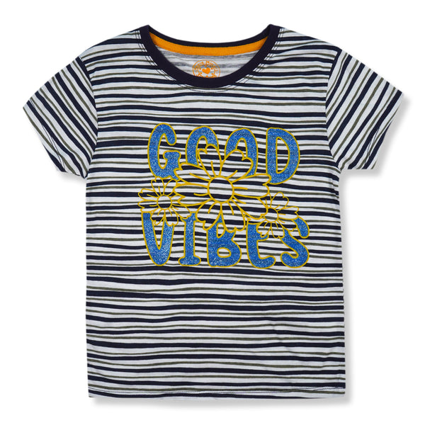 Kids Half-Sleeves T-Shirt Good Vibes Stripes Navy Blue - Mini Charm