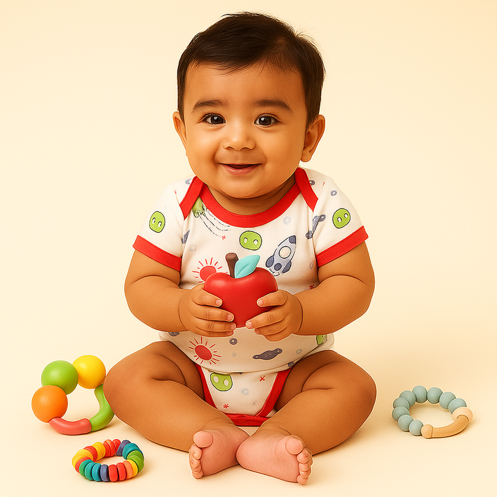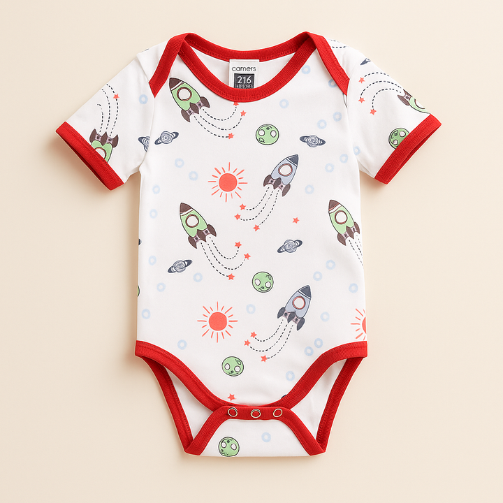 Baby Bodysuit Moon & Rocket Red - Sunshine