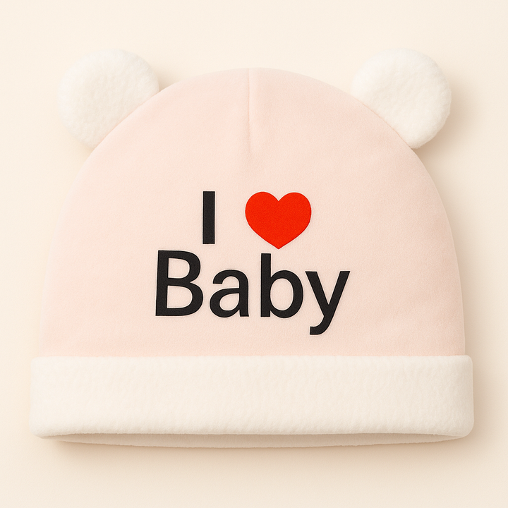 Baby Fleece Cap I Love Baby Bear Pink - Sunshine