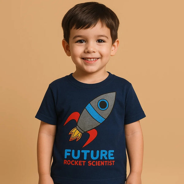 Kids T-Shirt Half Sleeves Rocket Navy Blue - Bloom Baby