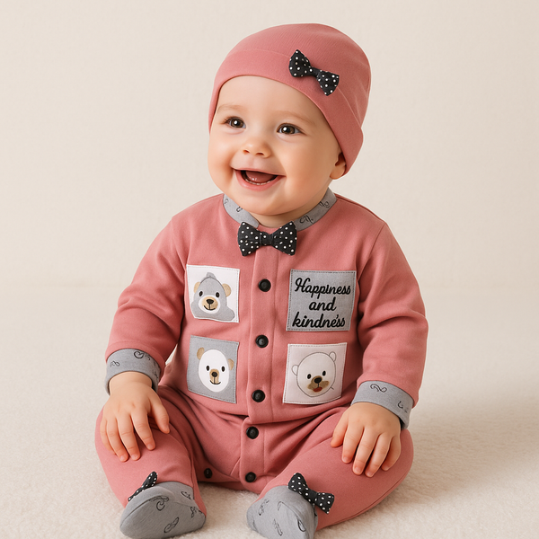 Kids Printed Fleece Tracksuit Bear Grey - Mini Charm