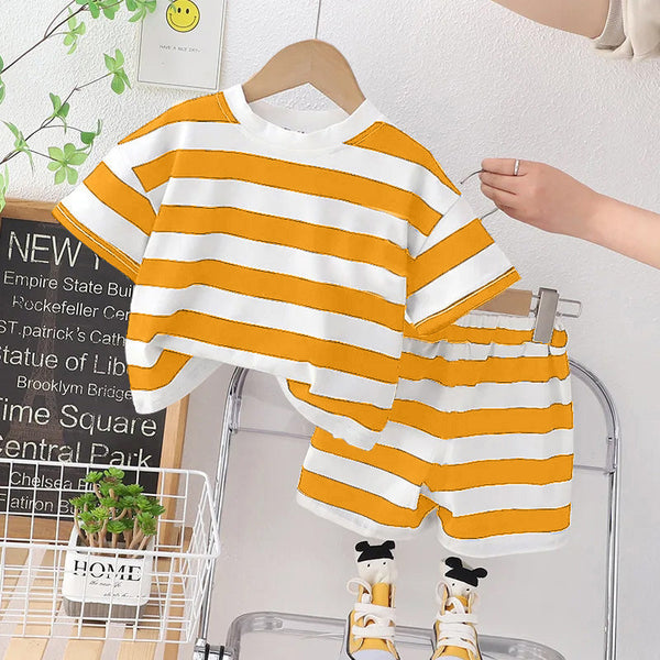 Kids T-Shirt & Short Set Wide Stripes Mustard - Mini Charm