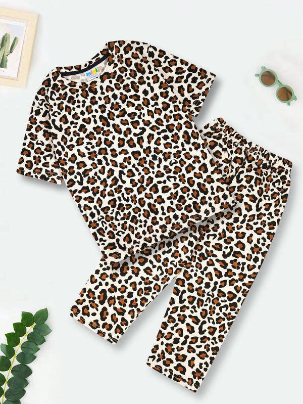 Kids T-Shirt & Short Set Leopard Beige - Mini Charm