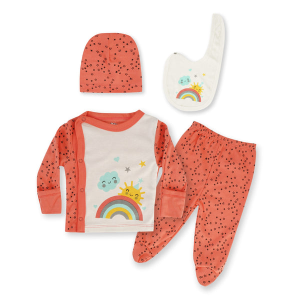 Little Star Baby 2pcs Hooded Towel & Bib Set Peach