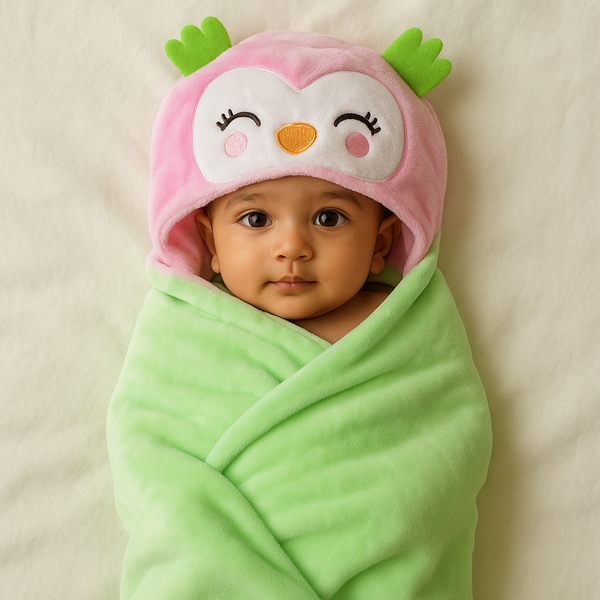 Little Star Baby Pack Of 2 Bodysuit With Hooded Sheet Duck Pink (0-6 Months)