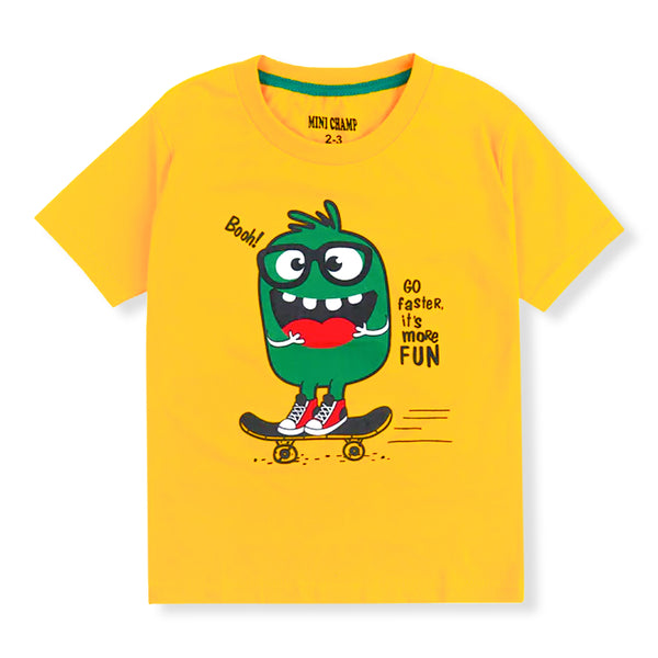 Kids Cotton T-Shirt Skateboard Yellow - Mini Champ