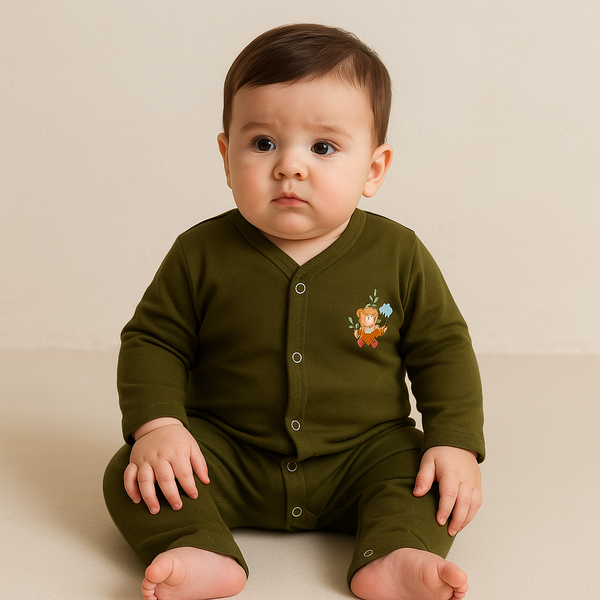 Baby Fleece Sleepsuit Bear Green - Sunshine