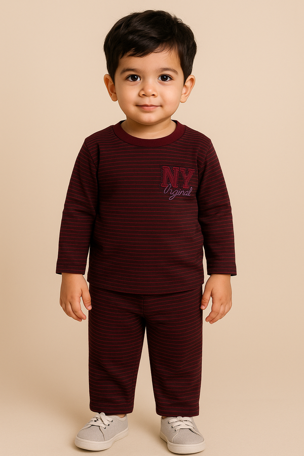 Kids Fleece Tracksuit Stripes Navy Blue & Grey - Mini Charm