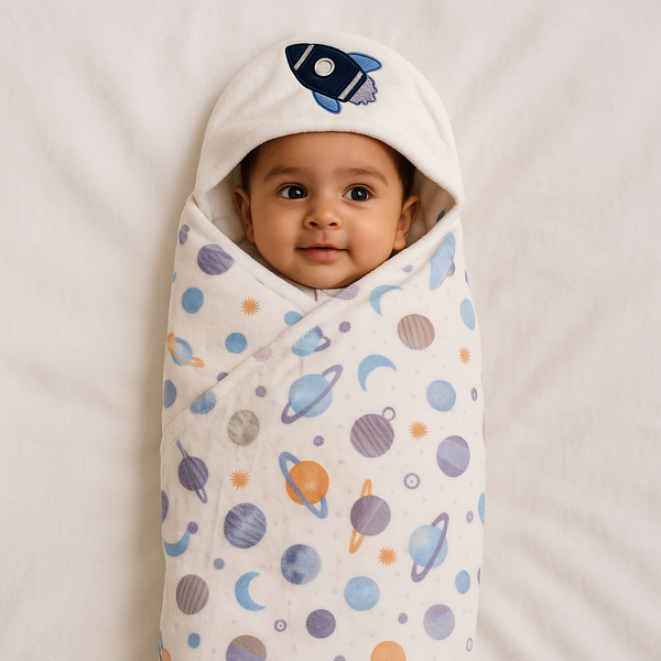 Baby Hooded Blanket Rocket White & Blue - Sunshine