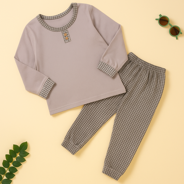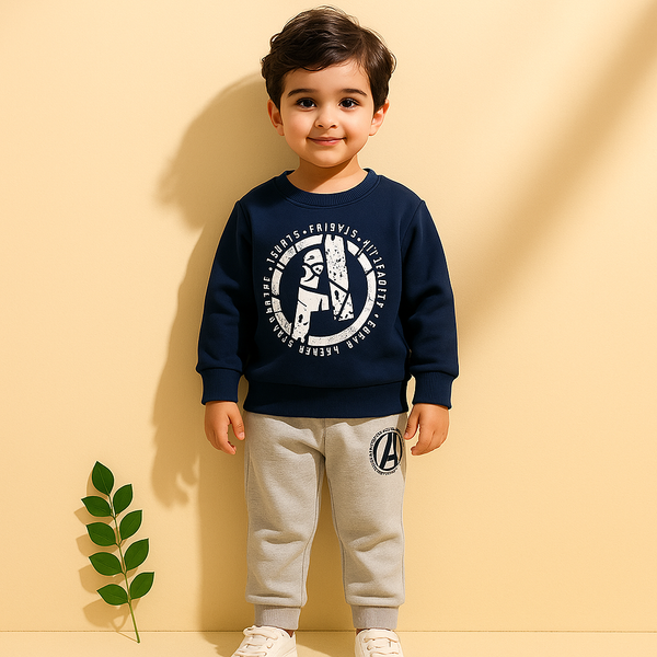 Kids Printed Fleece Tracksuit 23 Grey & Navy Blue - Sunshine