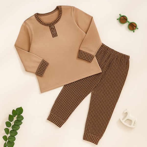 Kids Printed Fleece Tracksuit Bear Brown - Sunshine