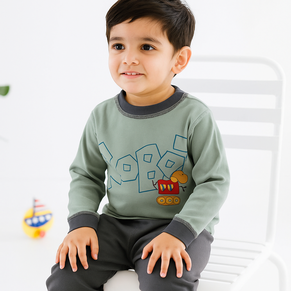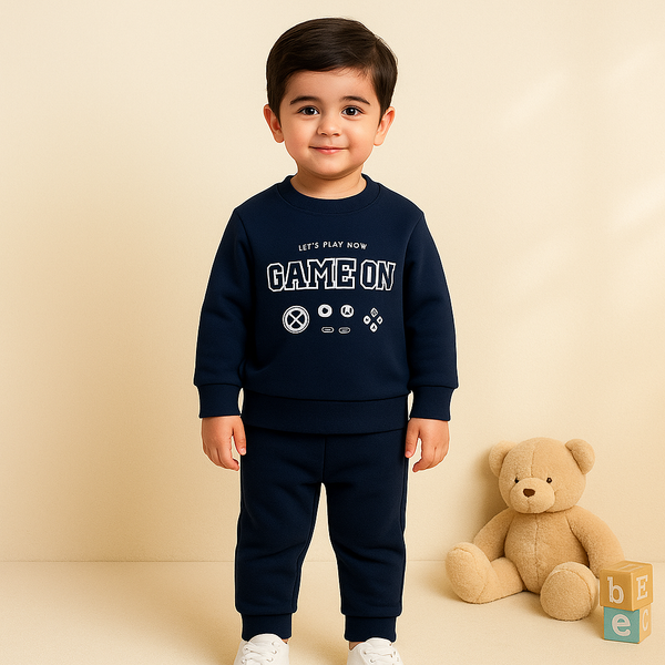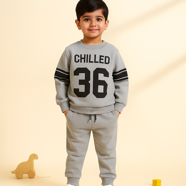 Kids Printed Fleece Tracksuit 23 Grey & Navy Blue - Mini Charm