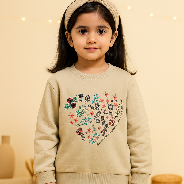 Kids Printed Fleece Tracksuit Hearts Beige - Mini Charm