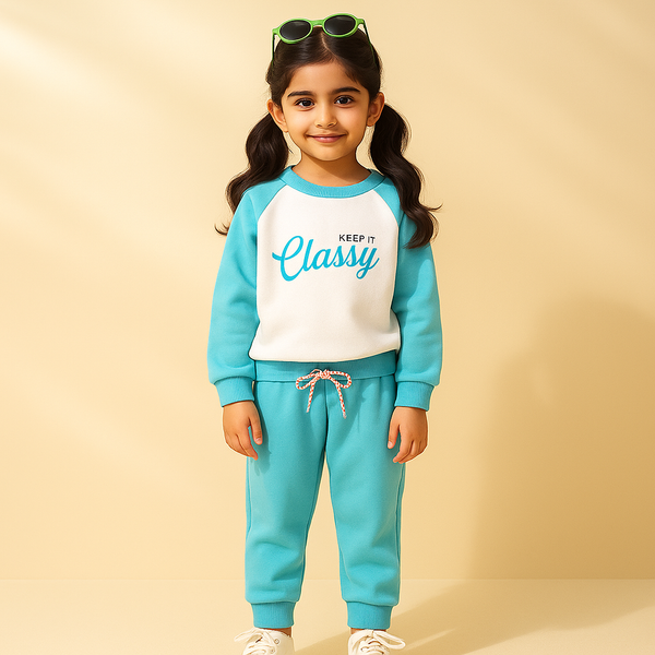 Kids Polyester Tracksuit Plain Sea Green - Mini Charm