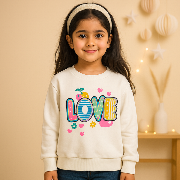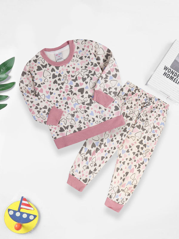 Kids Printed Fleece Tracksuit Love White & Pink - Mini Charm