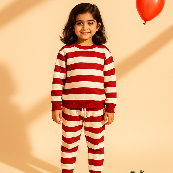 Kids Polyester Tracksuit Stripes Maroon - Mini Charm