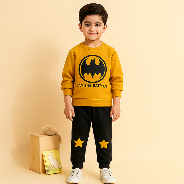 Kids Printed Fleece Hooded Tracksuit Batman Black - Mini Charm