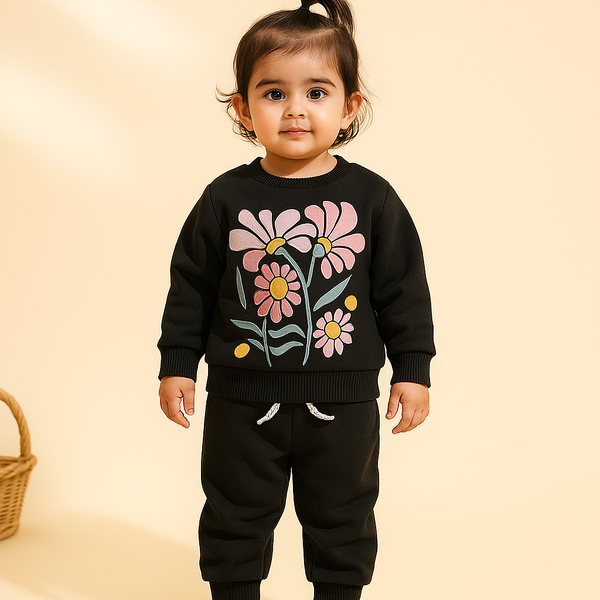 Kids Printed Fleece Tracksuit Out Of This World Black - Sunshine