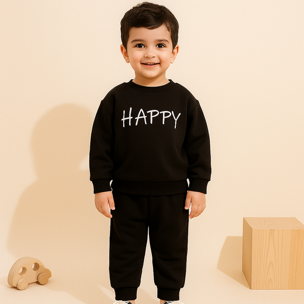 Kids Polyester Tracksuit Plain Black - Mini Charm