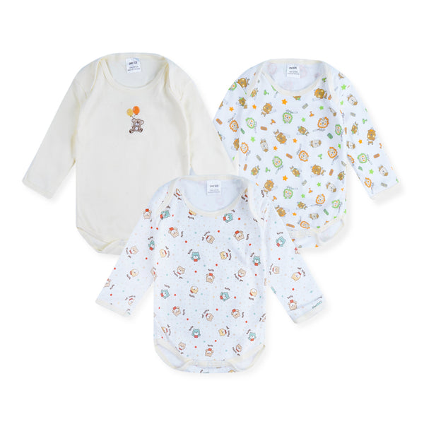 Baby Full Sleeves Bodysuit Pack Of 3 Star Animals Pink - Sunshine