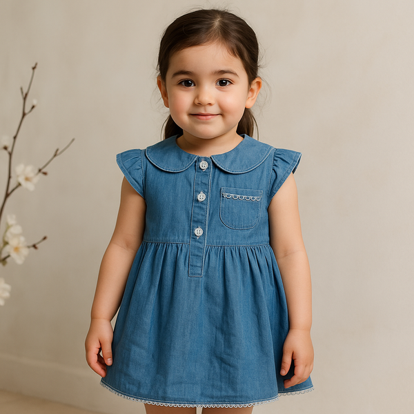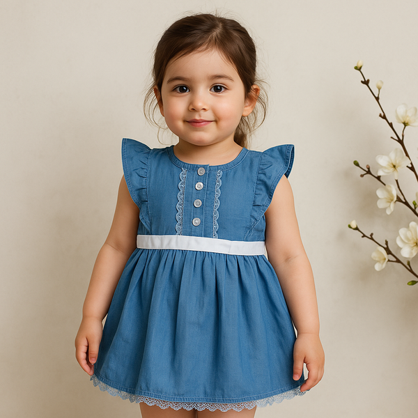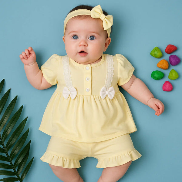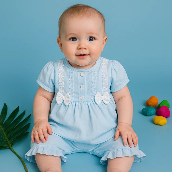 Baby Soft Cotton Frock & Pajama Set Bow Blue - Sunshine