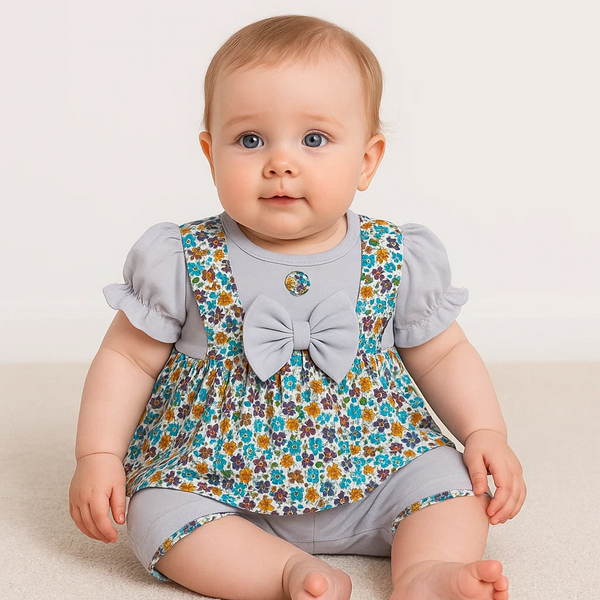 Baby Frock & Short Set Flowers Grey - Sunshine