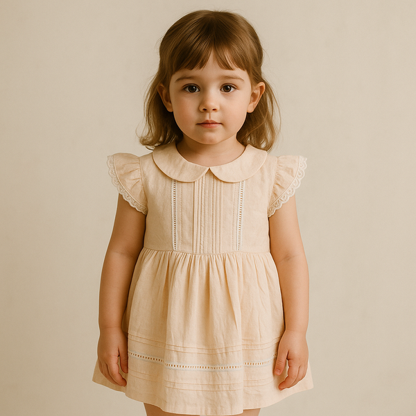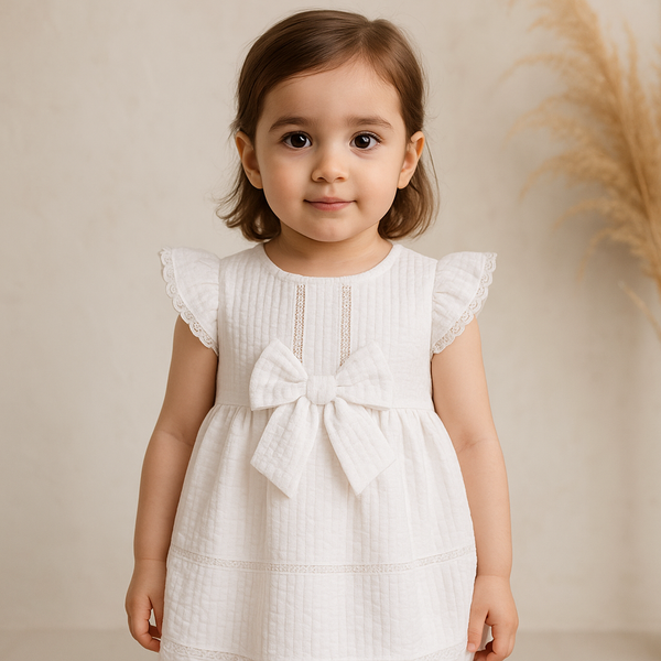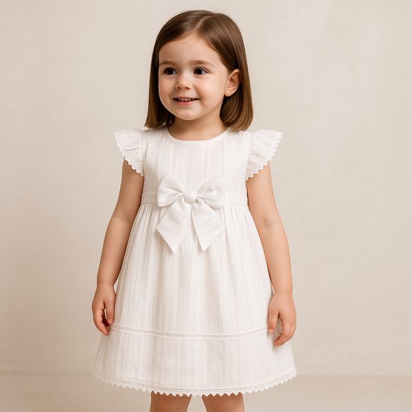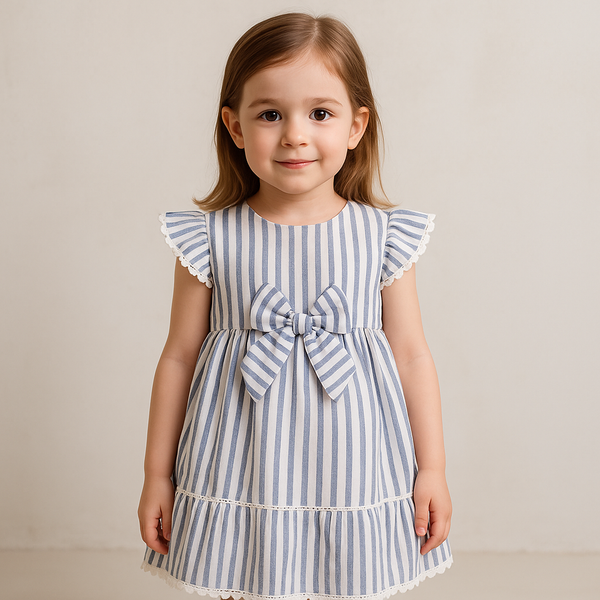 Girls Cotton Frock Bow Stripes Grey - Mini Charm