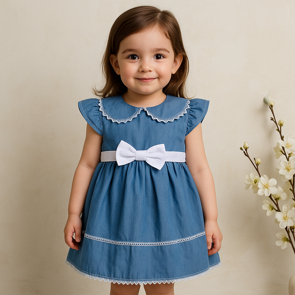 Baby Sleeveless Frock Bow Blue (0-3 Months) - Sunshine