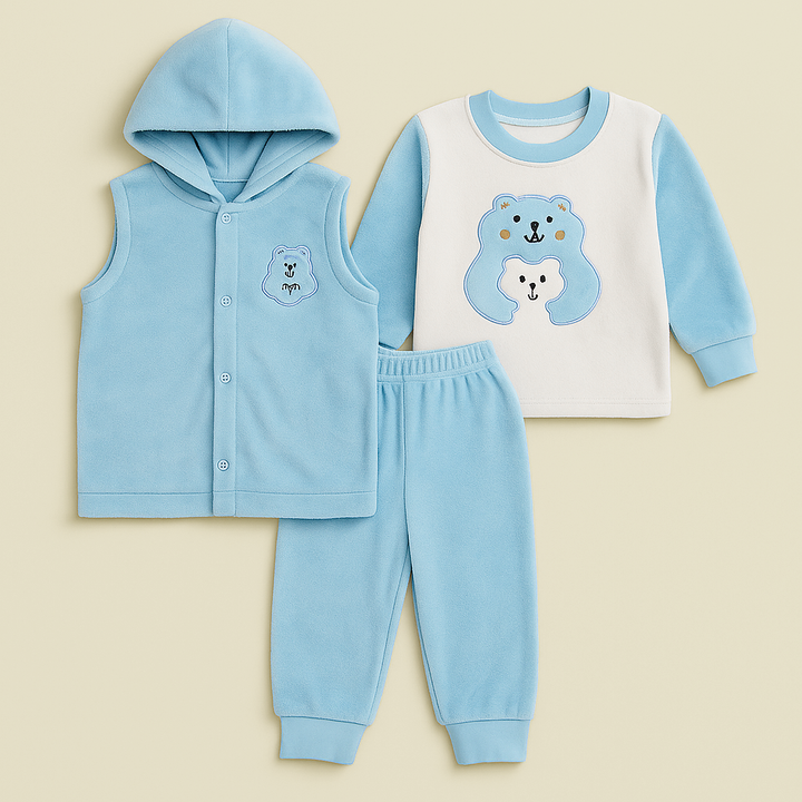 Baby 3Pcs Hooded Fleece Pajama Set Bear Blue - Oolaa