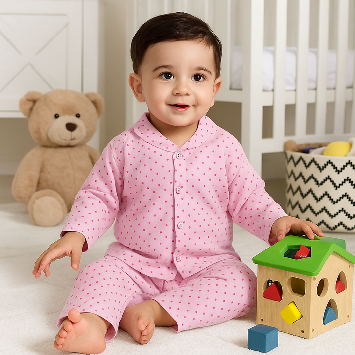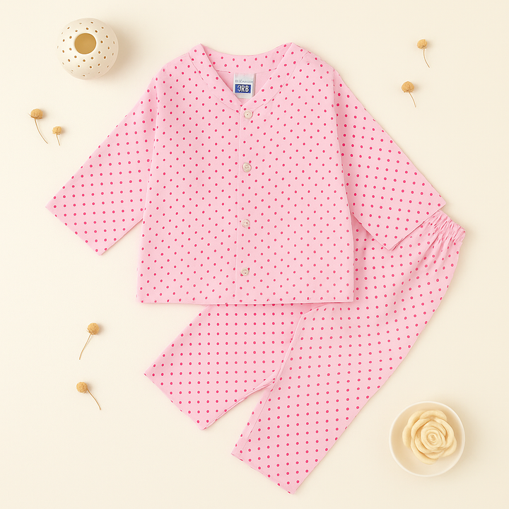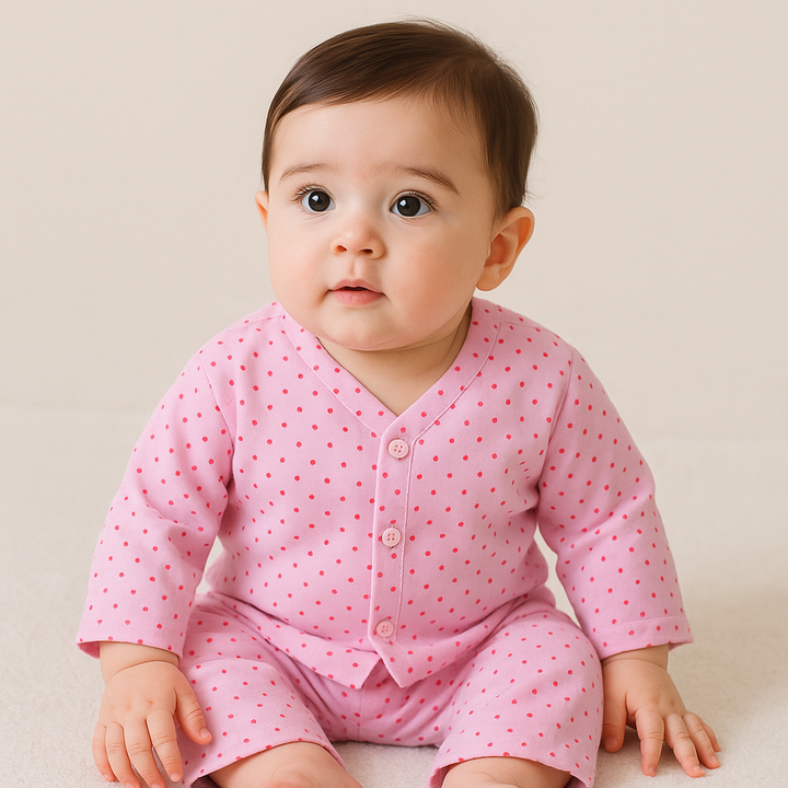 Baby Cotton Sleepsuit Polka Dots Pink - Sunshine