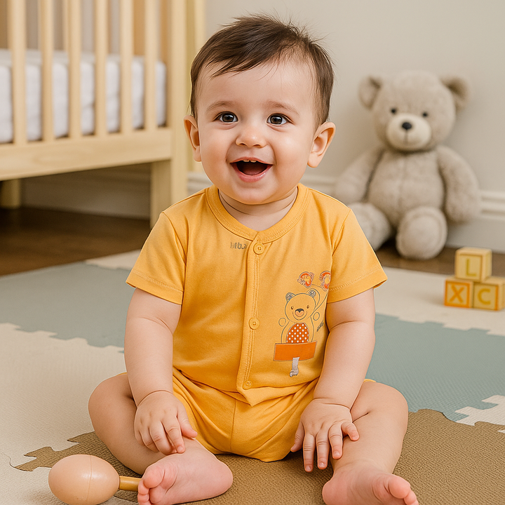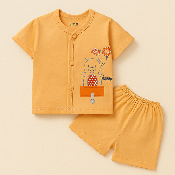 Baby Cotton Sleepsuit Set Happy Bear Orange (0-6 Months) - Sunshine