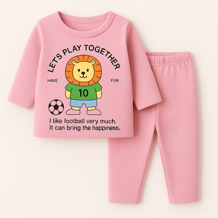 - Color & Print: Pink set with lion artwork.