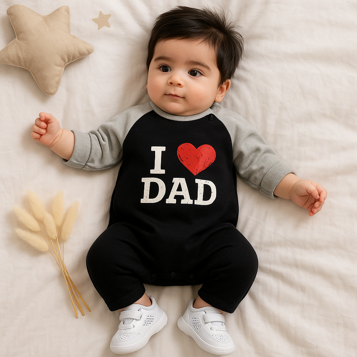 Baby Full-Body Printed Cotton Romper I Love Dad Black WC - Mini Charm