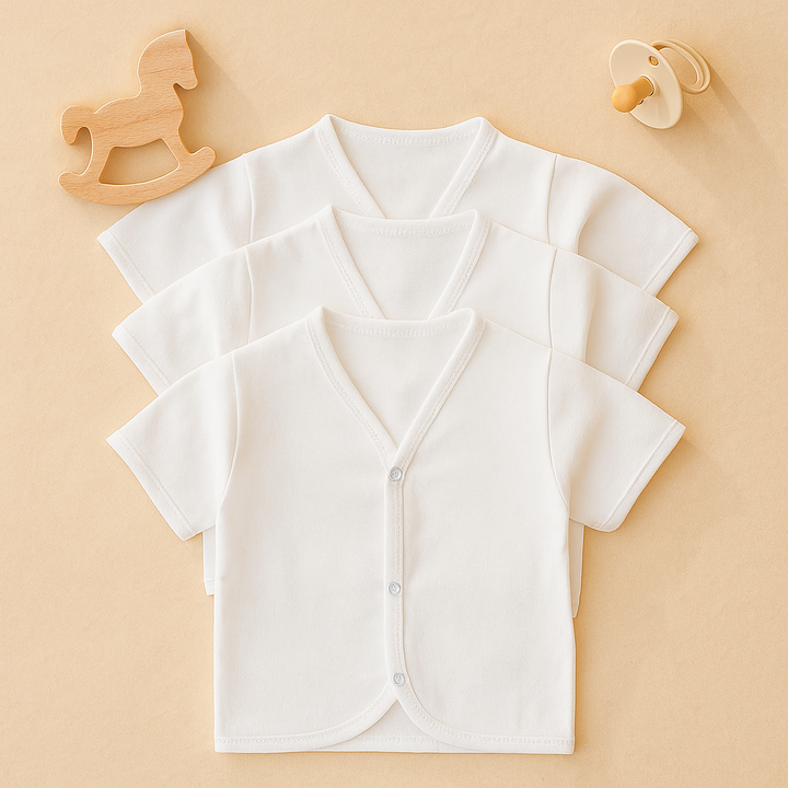 Baby Half Sleeves Front Open Vest Pack Of 3 White - Mini Charm