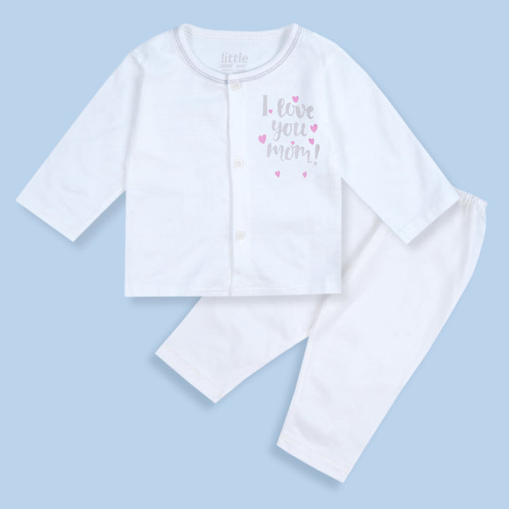 Baby Cotton Sleepsuit Set I Love You Mom Pink (0-6 Months) - Sunshine