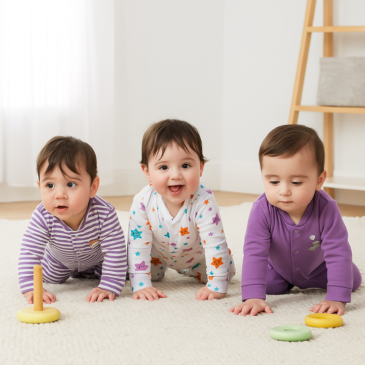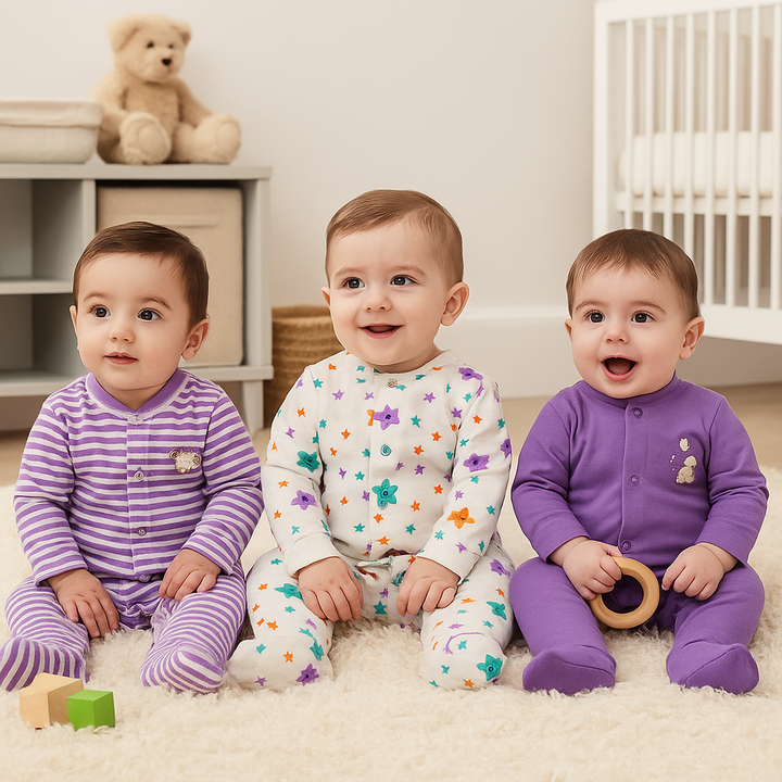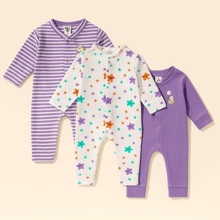 Baby Pack Of 3 Cotton Full Body Sleepsuit Stars Purple - Sunshine