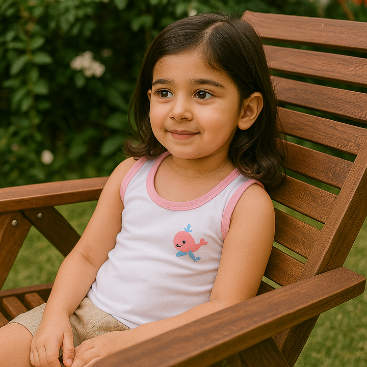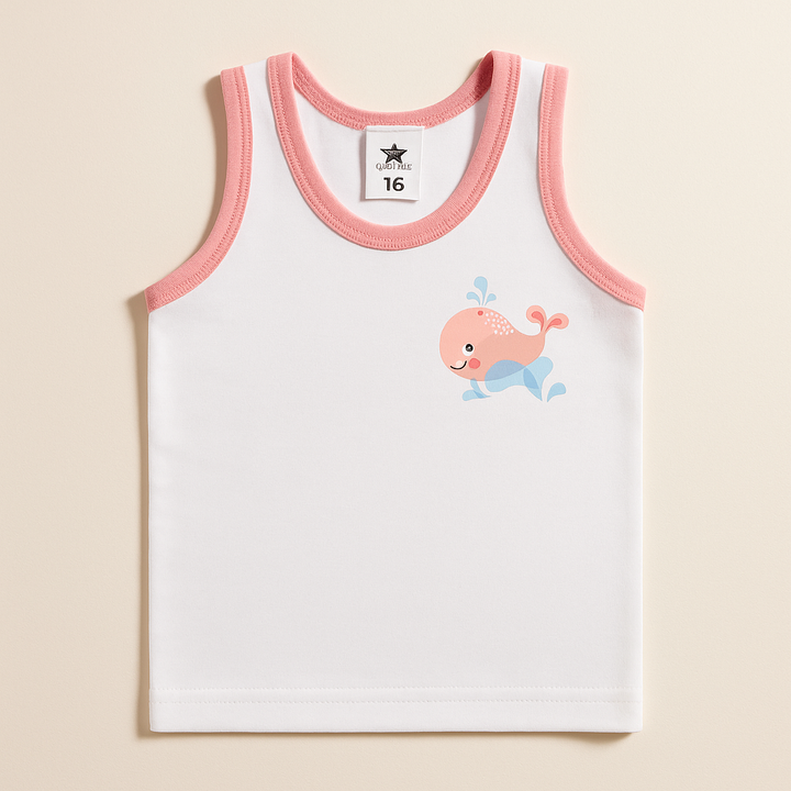 1 x Pcs, 06 Months to 03 Years. White Sleeveless Baby Sandos with Peach Borders by Sunshine - stitched from breathable cotton, providing a soft and gentle feel against the kids's delicate skin, ensuring utmost comfort throughout the day.