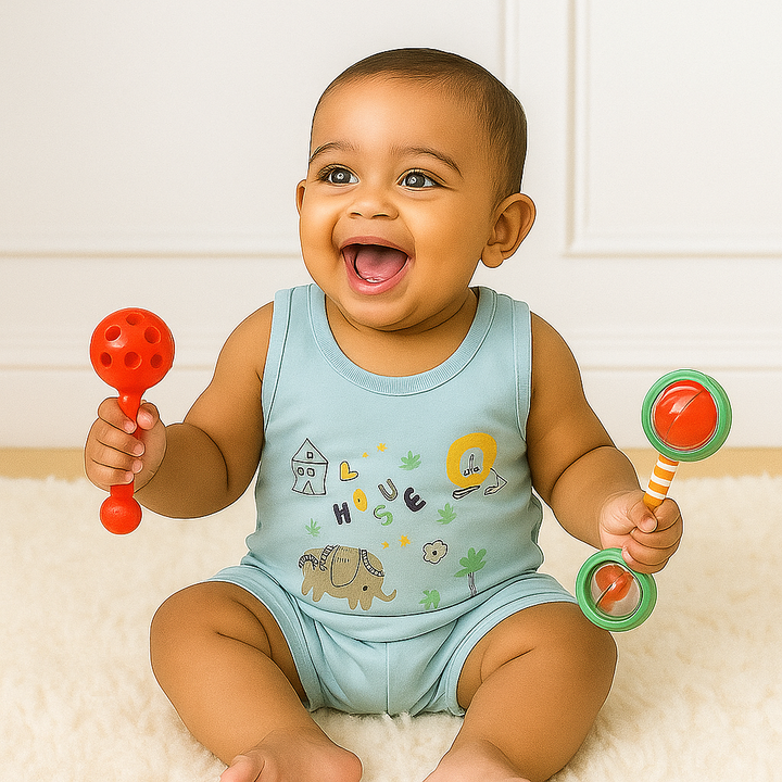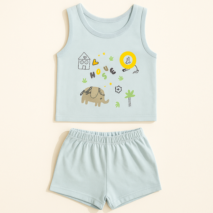 Baby Sandos & Short Set Animals House Blue - Sunshine