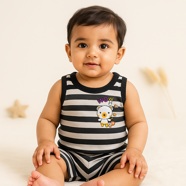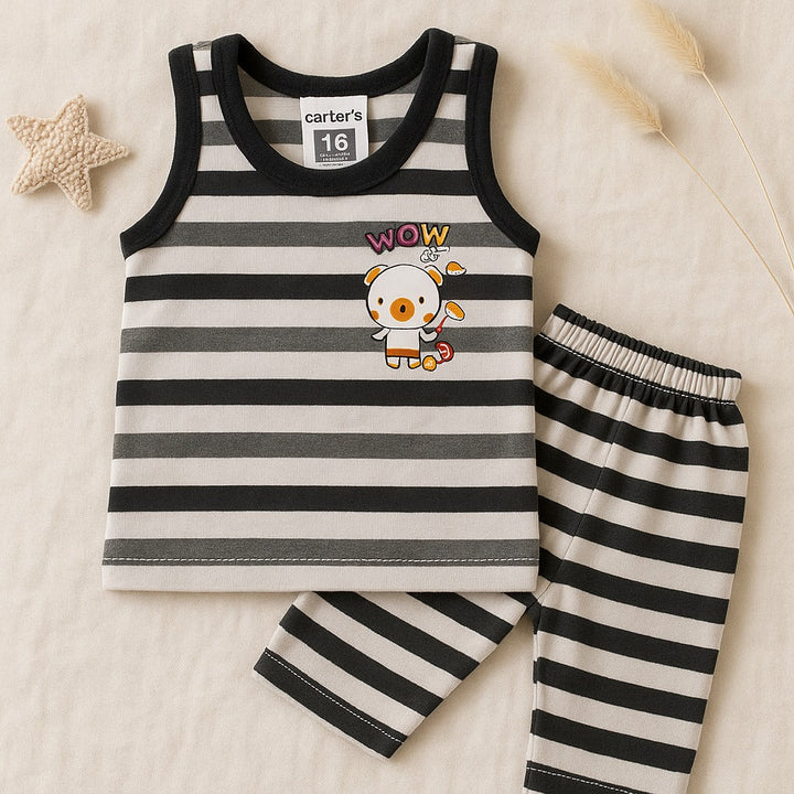 Baby Sandos & Short Set Stripes Grey & Black - Sunshine