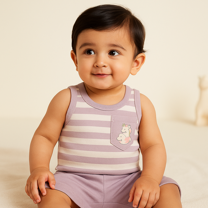 Baby Sandos & Short Set Wide Stripes With Pockets Purple - Sunshine