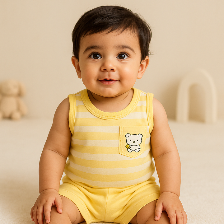 Baby Sandos & Short Set Wide Stripes With Pockets Yellow - Sunshine
