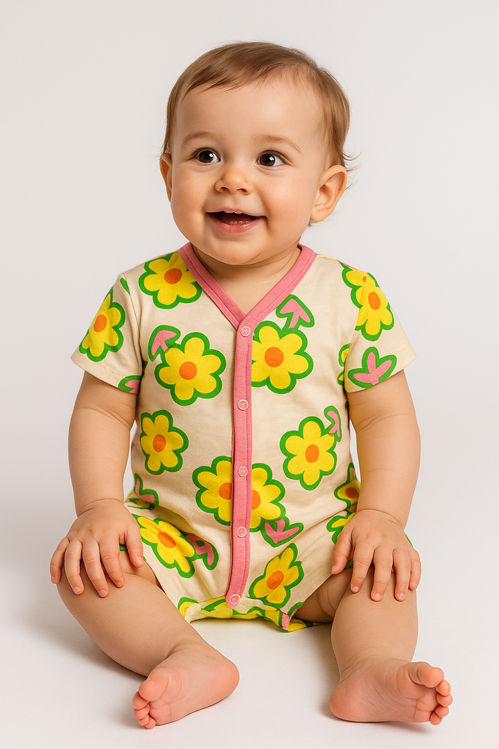 Baby Short-Body Cotton Romper Flower Pink & Peach - Mini Charm