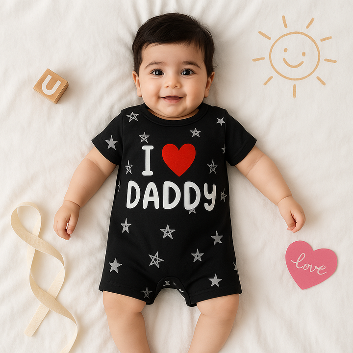 Baby Short-Body Printed Cotton Romper I Love Daddy Black WC - Mini Charm