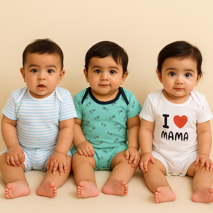 Baby Short-Leg Romper Pack Of 3 I Love Mama - Sunshine