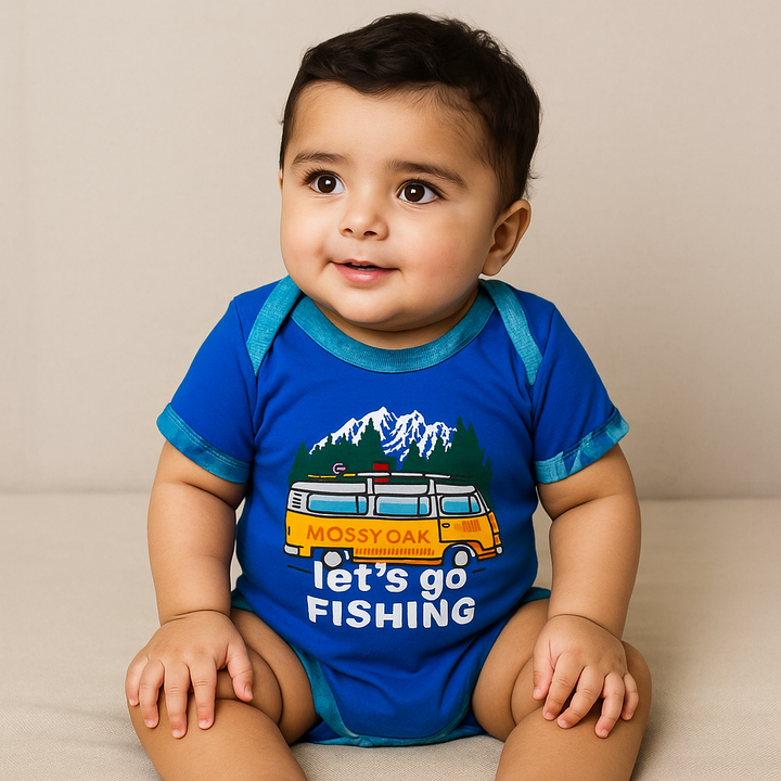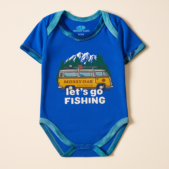 Baby Short Sleeves Bodysuit Fishing Blue - Sunshine