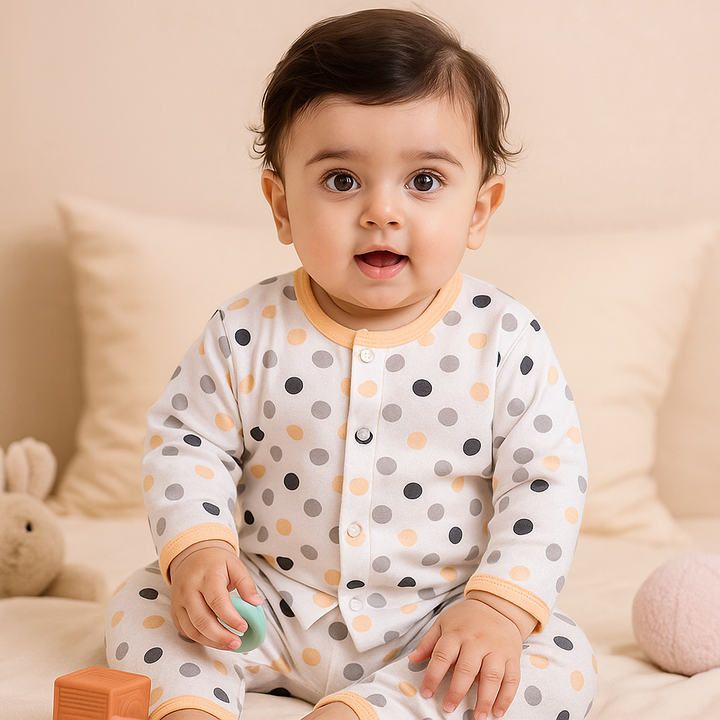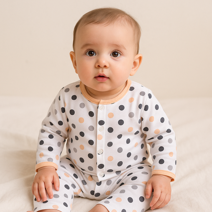 Baby Sleepsuit Fleece Grey Polka Dots - Sunshine