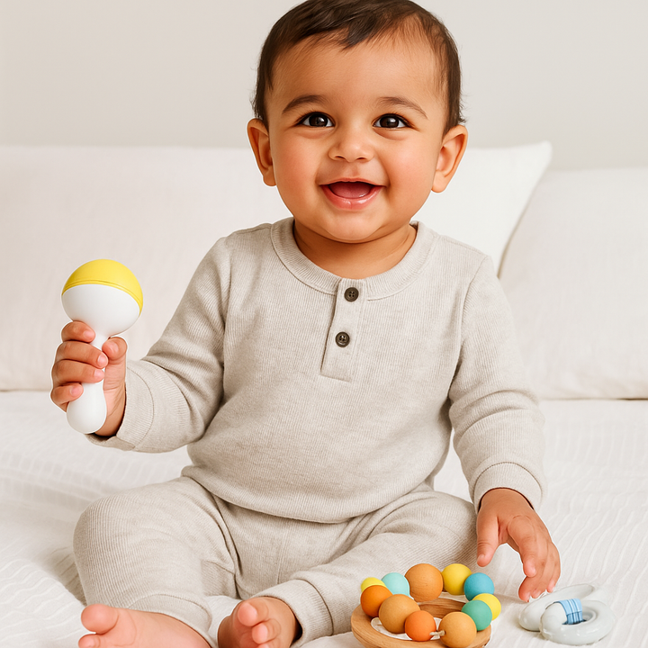 - Color & Print: Textured Grey with playful print