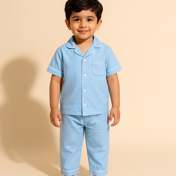 Girls Half-Sleeves Nightwear Pajama Set Blue - Sunshine