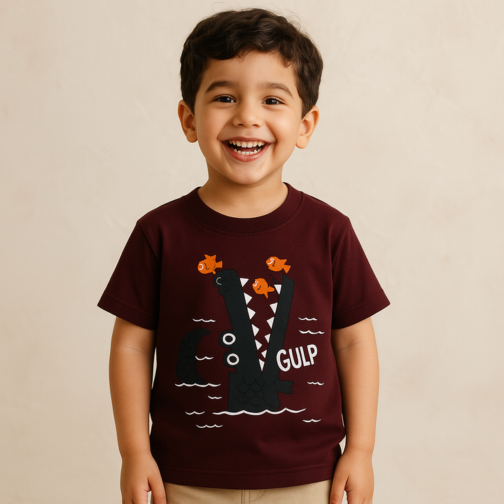 Kids Cotton T-Shirt Crocodile Maroon - Mini Champ