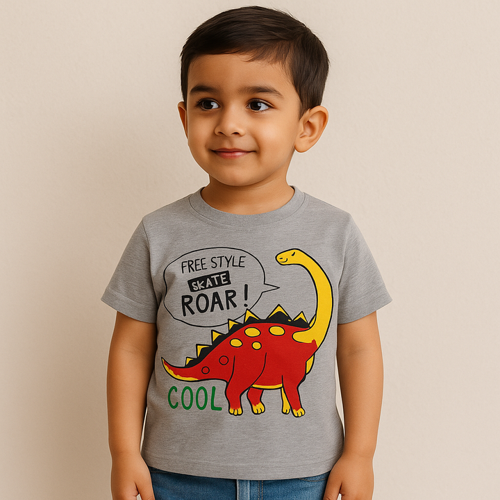 Kids Cotton T-Shirt Dinosaur Grey - Mini Champ